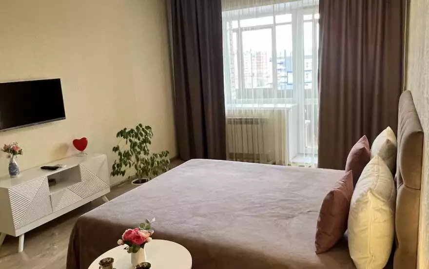 Квартира класса Люкс, идеально чистая, сделана с любовью для вашего отдыха! Есть абсолютно все, чистое белье, кухонные принадлежности, холодильник, плита, чайник, телевизор, кондиционер, удобная двуспальная кровать, большая лоджия. Ждем вас в гости!