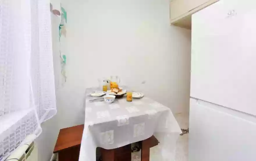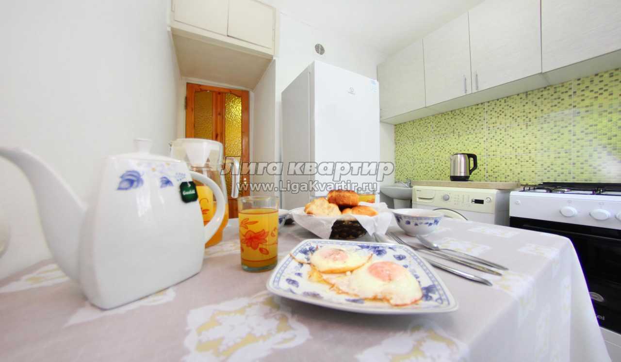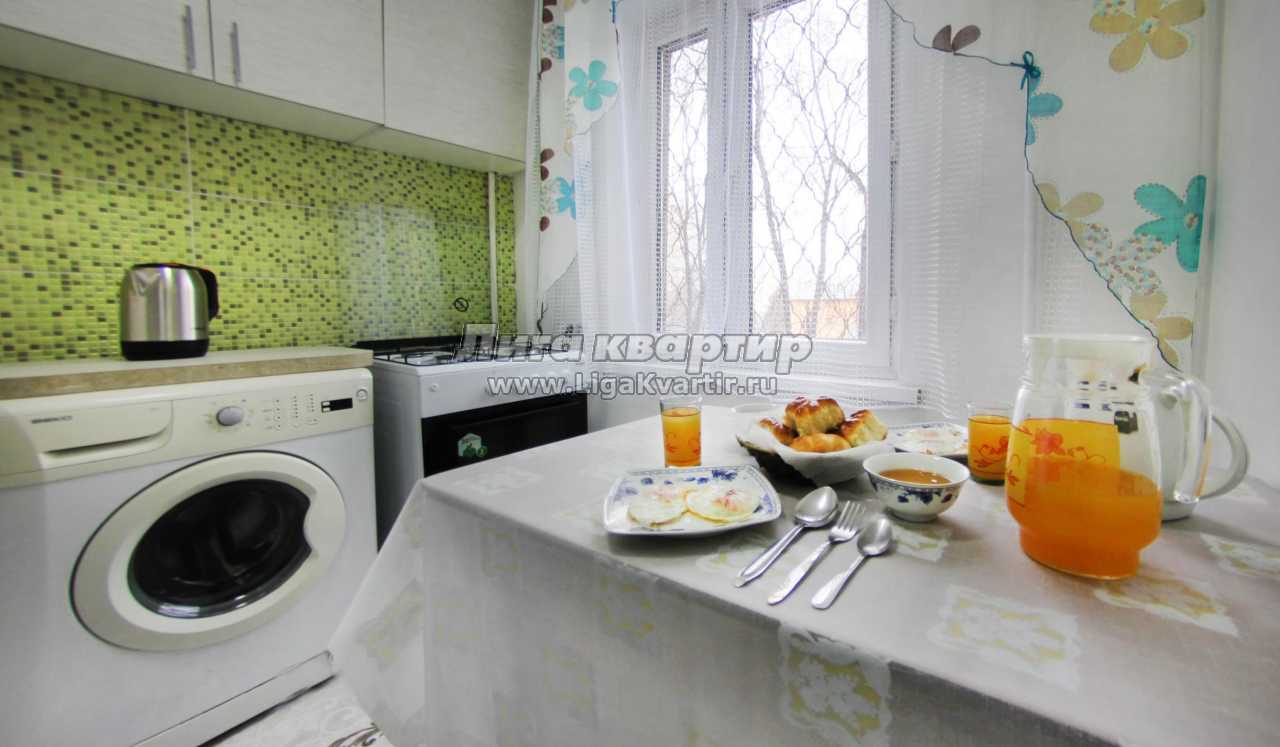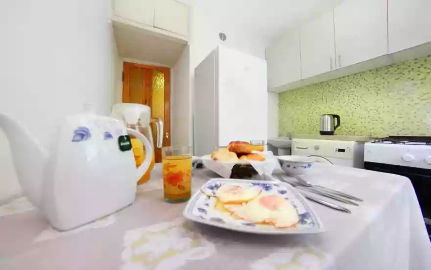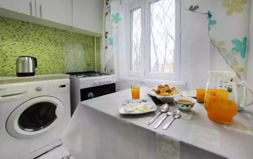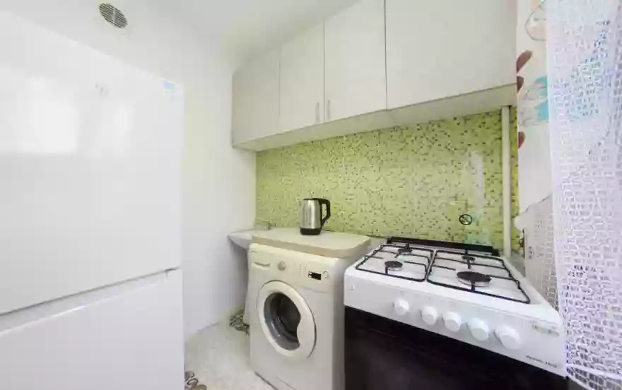 В квартире имеется все необходимое для комфортного проживания. Есть вся посуда для приготовления и приема пищи, утюг, гладильная доска, сушилка, фен, эл.чайник, холодильник, стиральная машина, газ.плита.