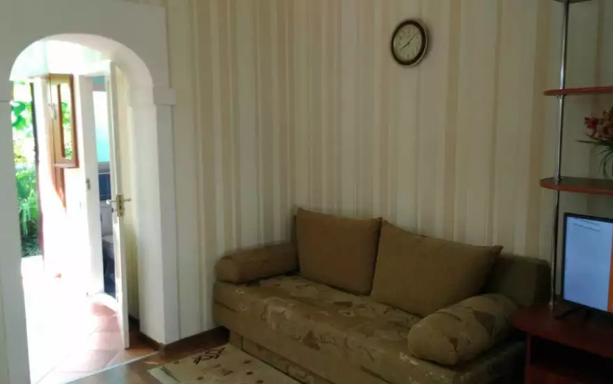 В г. Алушта, Крым, в 250 м. от МОРЯ сдается отдельная часть ДОМА с изолированным двориком (пер. Краснофлотский, выше отеля «Крымские зори») и панорамным видом на море, горы и город, а также летний концертный зал. Вместимостью до 5 чел. (2+2+1), холодная и горячая вода постоянно, кондиционер, стиралка-автомат, хороший ремонт, плазменный ТВ, цифровое кабельное, интернет WIFI, утюг, фен, сейф, полностью оборудованная кухня (холодильник, газ. плита, эл. чайник, СВЧ, вся посуда), крытая зона, топчан под навесом, качели, мангал и многое другое для хорошего отдыха. Актуальные цены уточняйте дополнительно. Трансфер из Симферополя.