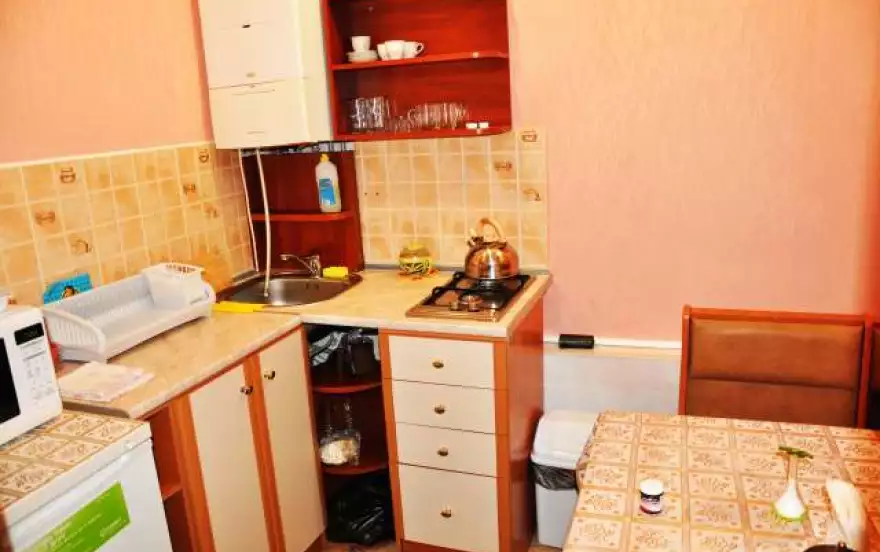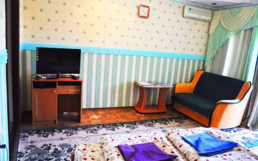 В номерах предусмотрена кухня для собственного приготовления. Центральная часть Алушты с центральным базаром, магазинами, супермаркетом, парикмахерской, аптеками и прочими достижениями цивилизации, расположены в 3 минутах ходьбы. Несмотря на расположения в центре курорта, в гостевом доме не слышно шума набережной, и музыка не мешает ночному отдыху.