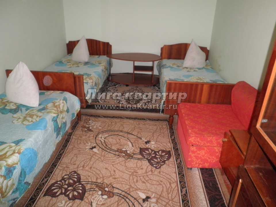Сдается посуточно в летнюю аренду эконом отдельно стоящий трехкомнатный дом на берегу по ул. Краснофлотская, вверх улицы, недалеко от "Рэдиссона" и пансионата "Крымские зори". Рядом находится ресторан "Встреча", "парк в миниатюре", кафе и многое другое. Дом двухэтажный с обыкновенным ремонтом и простой мебелью. Бюджетный отдых в Алуште на большую компанию из восьми человек. В первой комнате три односпальные кровати, во второй - аналогично три спальных раздельных места, в третьей -двуспальная кровать. В доме телевизор, интернет. Кухня полноценная с газовой плитой и духовкой. В санузле поддон, горячая вода постоянно, стиральная машинка. Есть веранда, на которой можно посидеть.