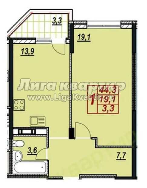 - Количество комнат: 1