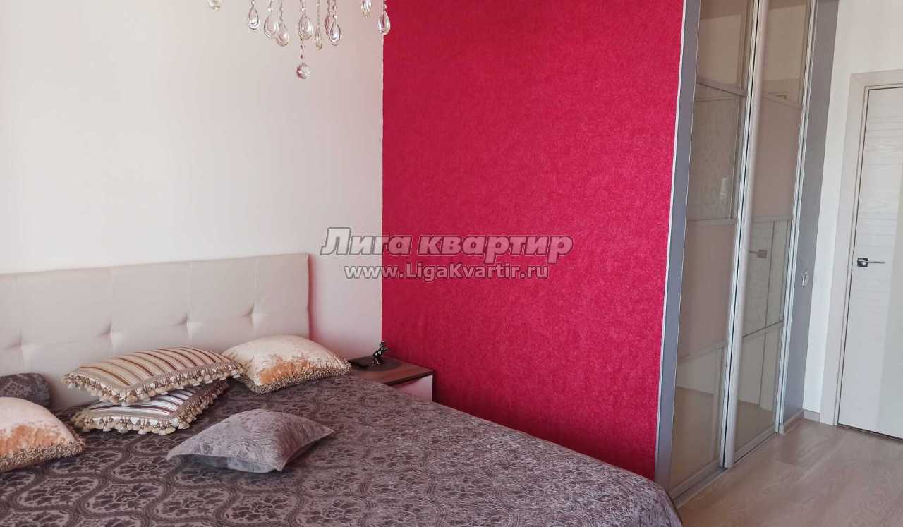 Спальня с большим гардеробом и балконом.