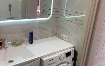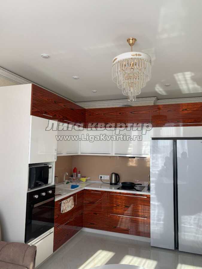 Сплит система(кондиционер во всех комнатах),встроенная кухня (вытяжка, индукционная варочная панель), встроенная посудомойка, большой 2 камерный холодильник.