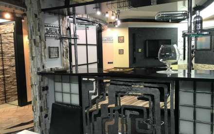 - кухня, совмещённая с гостиной барной стойкой;