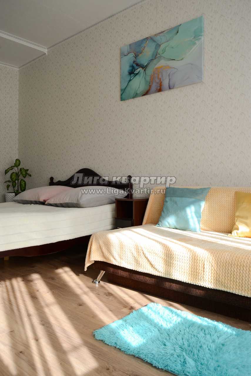 В квартире может разместиться до 4 гостей, имеется двух спальная кровать и раскладной диван.