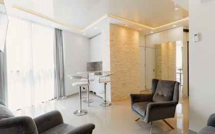 - В квартире: Мебель в комнатах / Мебель на кухне / Холодильник / Посудомоечная машина / Стиральная машина / Интернет / Телевизор / Кондиционер / Душевая кабина