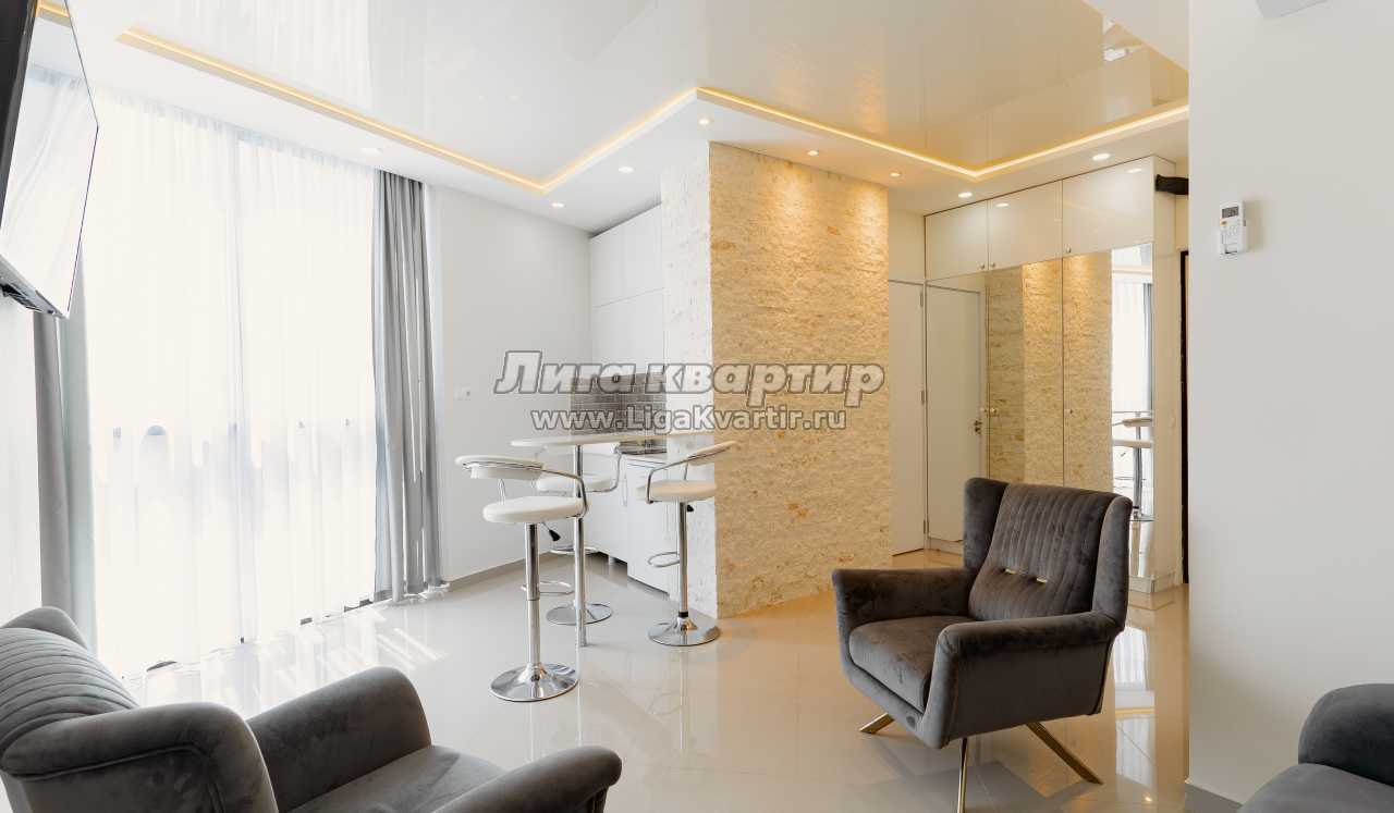 Срочно сдается новая отремонтированная квартира премиум-класса с 2 комнатами в комплексе Рамада на улице Шартава с красивым видом на горы и море.