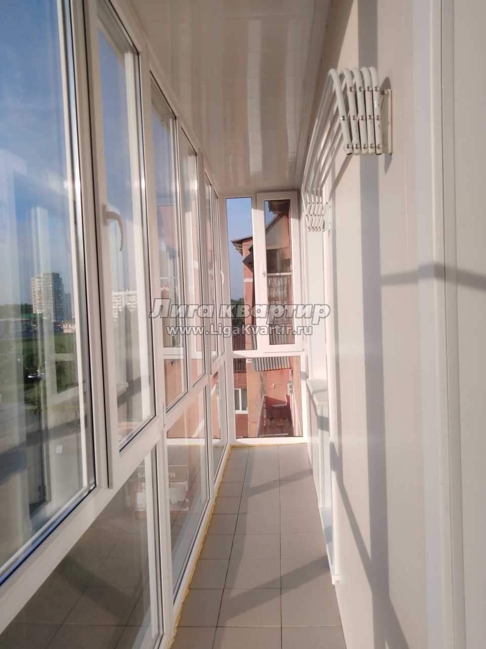 Установлены пластиковые окна, на полу лежит ламинат, есть большая лоджия, ванная и туалетная комната в кафеле.