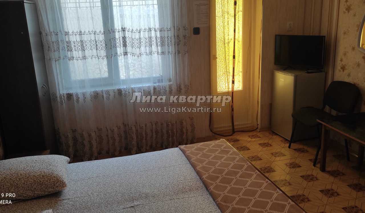( кровать двухспальная, шкаф пенал, 2 прикраватные тумбочки.Есть так же 2 номера эконом варианта( 2 односпальные кровати, телевизор, тумбочки, вешалка,вентилятор. Уютный двор, со второго этажа красивый вид на пруд. Имеется кухня общего пользования с необходимой посудой.До моря 100-150 метров.Желаем вам приятного отдыха..