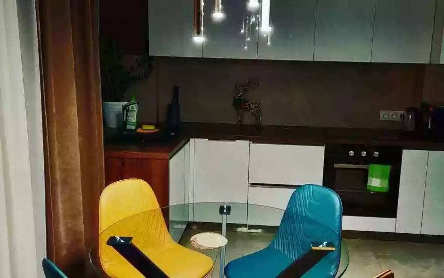 Новая квартира с дизайнерским ремонтом, типа евродвушка. Оценка на Букинге 10 из 10 Студия с отдельной спальней. Оборудована всей необходимой бытовой техникой.
