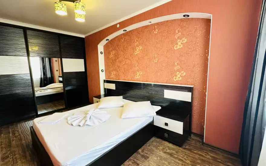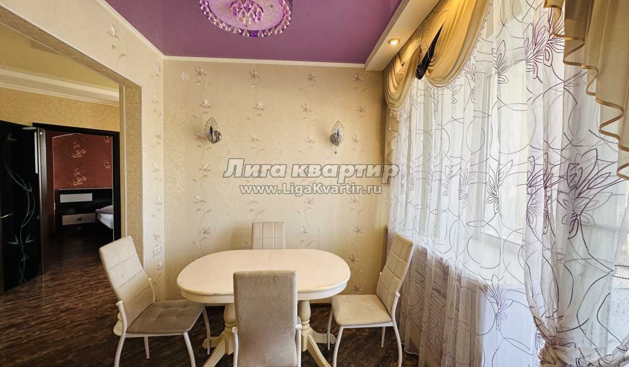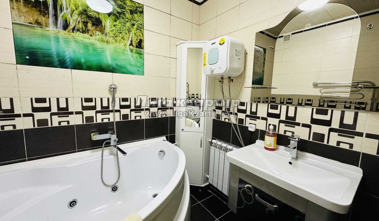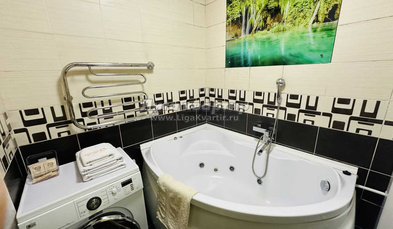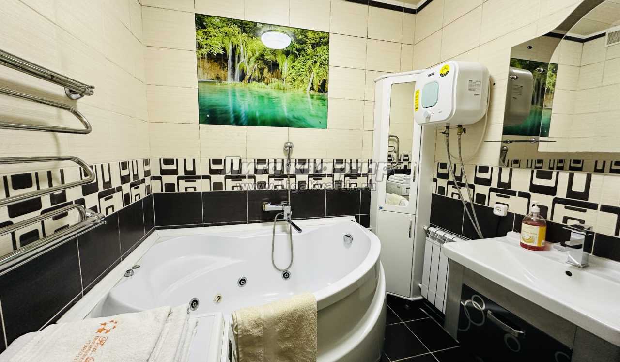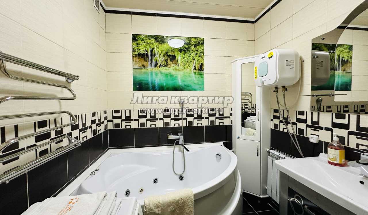 Предлагаем трехкомнатную квартиру с отличным ремонтом в центре города. Большой плазменный ТВ. Две отдельные изолированные комнаты и холл. Санузел раздельный. Ванная комната оснащена большой угловой ванной с джакузи.