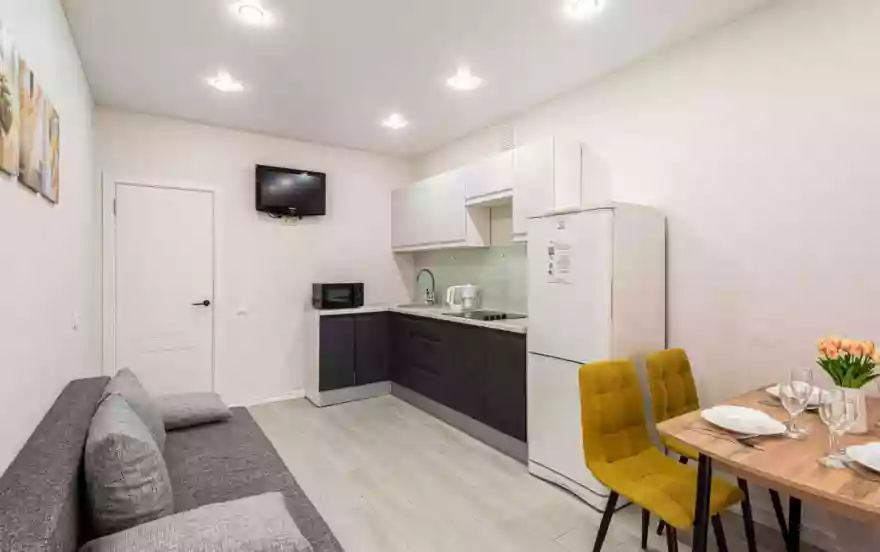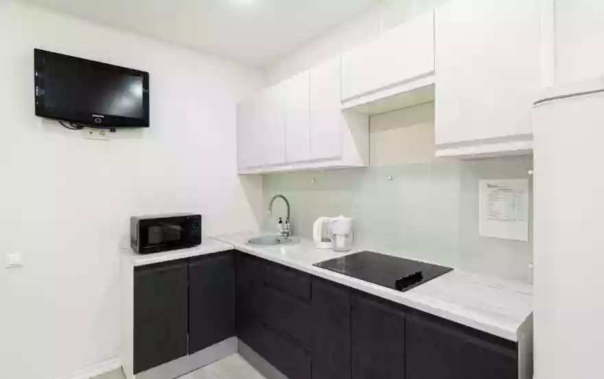 • Полностью оборудованная кухня (холодильник, электрическая варочная панель, микроволновая печь, электрический чайник, фильтр для питьевой воды)