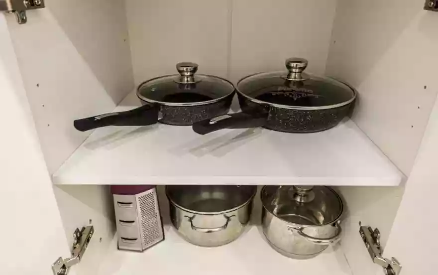 • Посуда, столовые приборы, кастрюли и сковороды