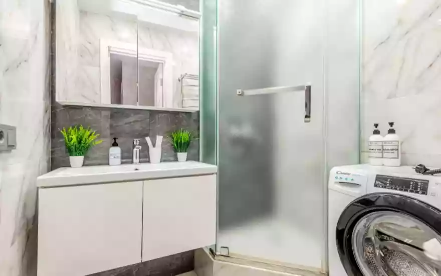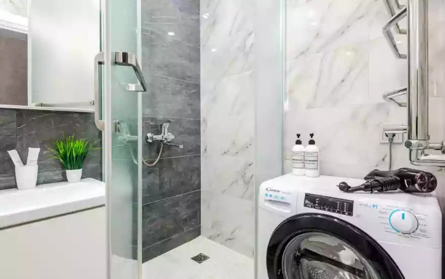 - Утюг с гладильной доской, стиральная машина, сушилка