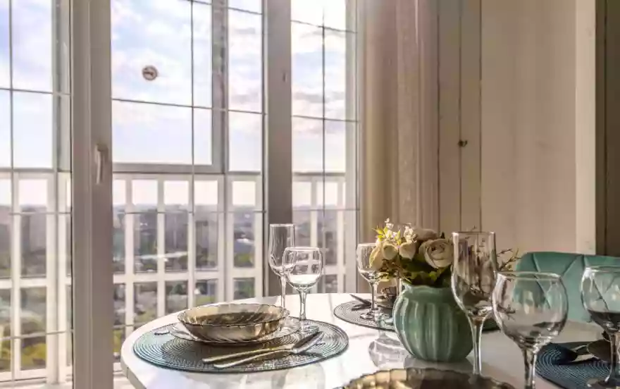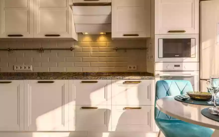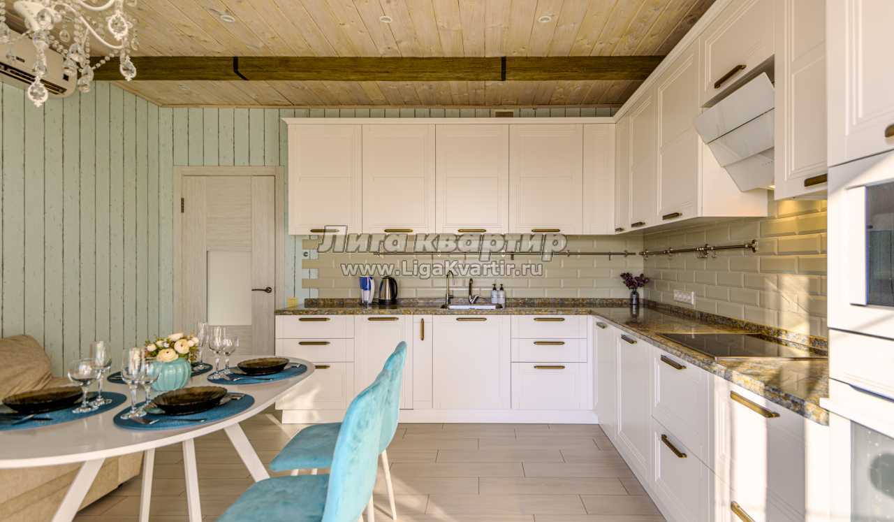 • Полностью оборудованная кухня (холодильник, электрическая варочная панель, духовой шкаф, вытяжка, посудомоечная машина, микроволновая печь, электрический чайник, фильтр для питьевой воды)
