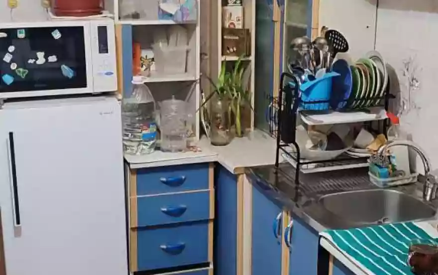 Полностью оборудованная кухня для удобства гостей. Плита, Микроволновка, Холодильник. Посуда, приборы и кухонные принадлежности