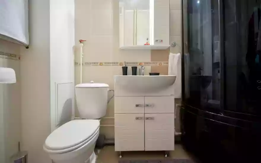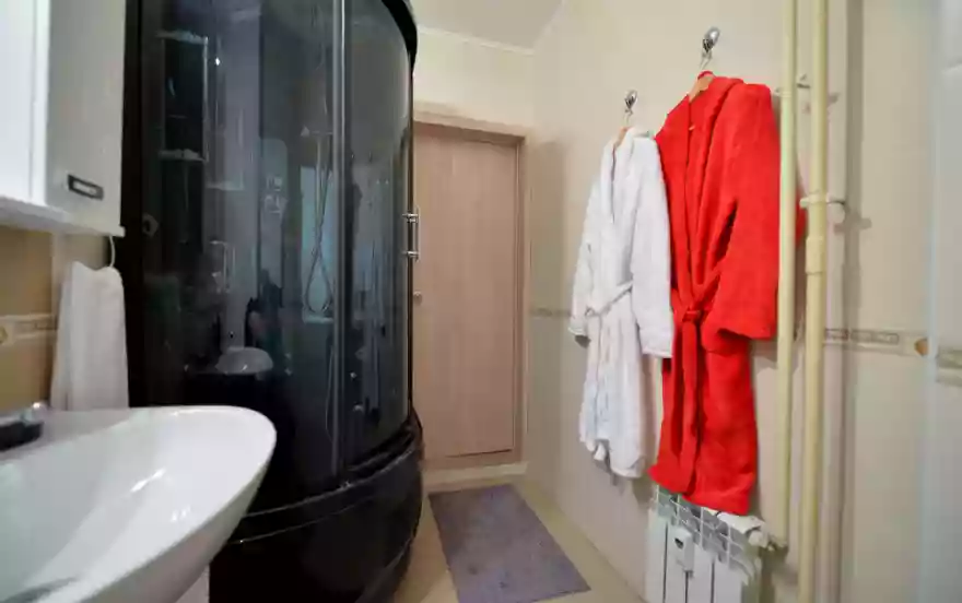 - В просторной ванной комнате установлена душевая кабина с гидромассажем.