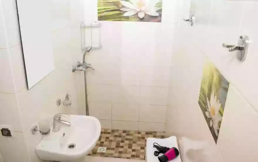 Душ, фен, полотенца.