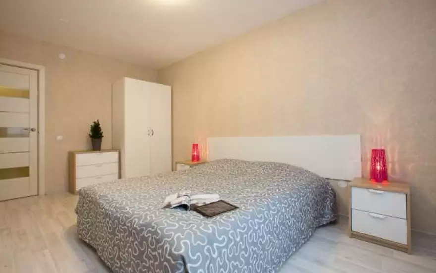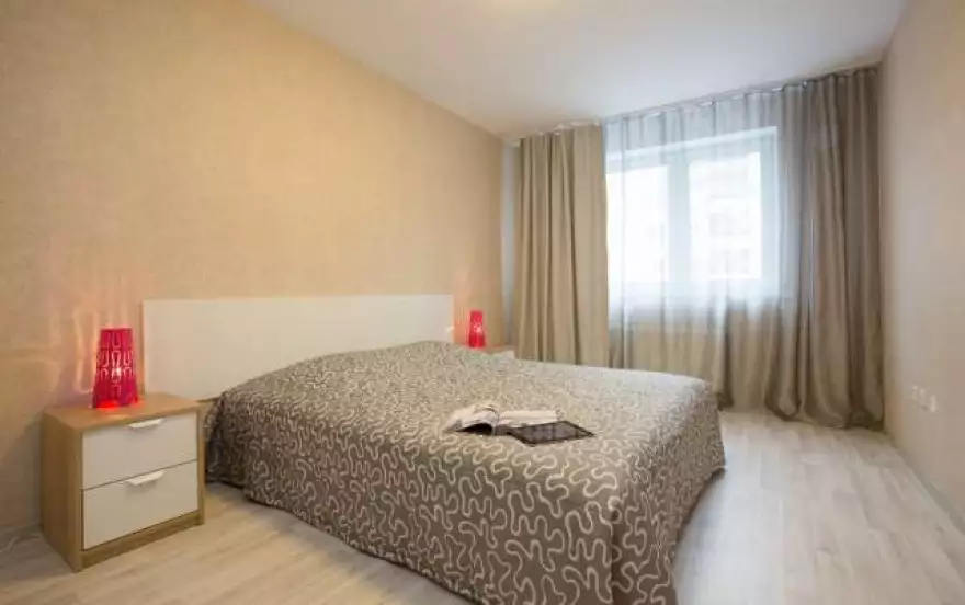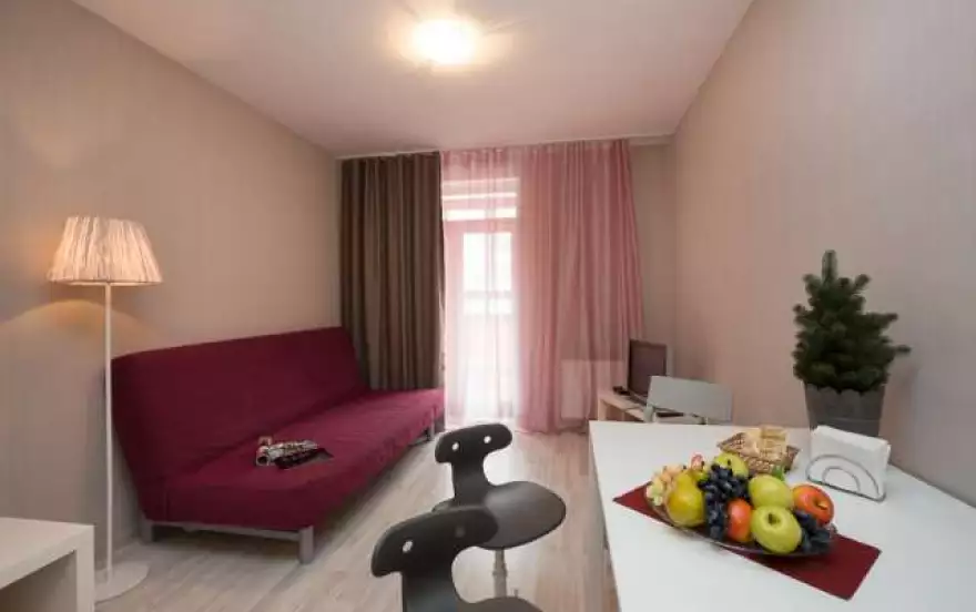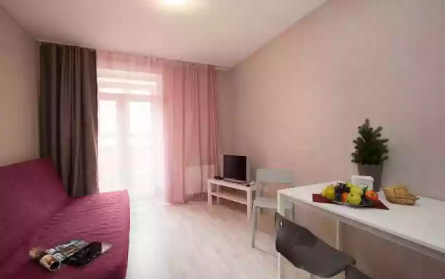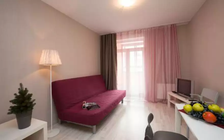 Уютная однокомнатная квартира в новостройке! Комфортно расположиться здесь сможет компания до четырех человек - в комнате имеется двуспальная кровать-бокс и двуспальный диван на кухне, квартира подойдет для семей с детьми.