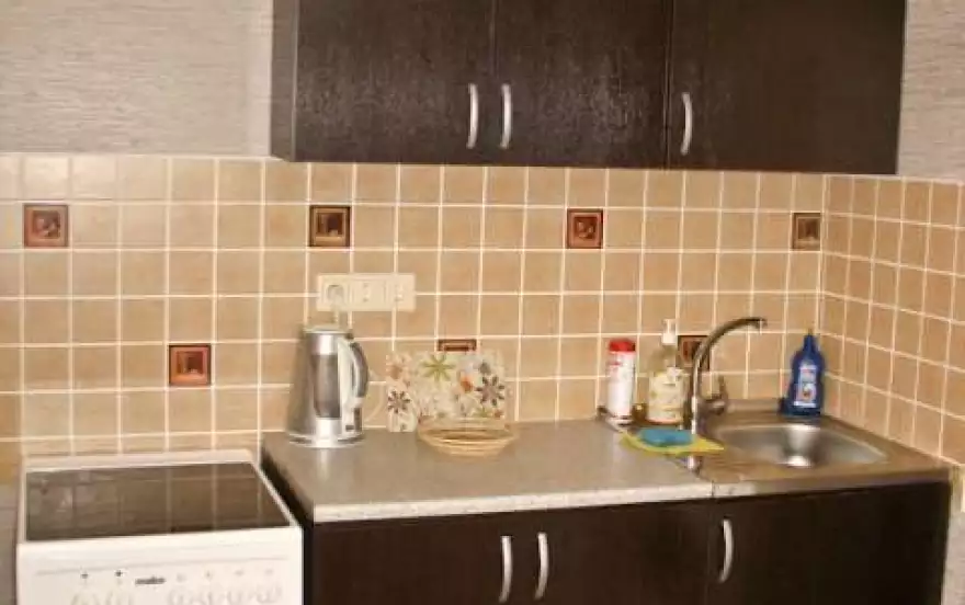 Бытовая техника: ЖК-телевизор, СВЧ-печь, холодильник, стеклокерамическая плита, электрочайник, стиральная машина-автомат, утюг.