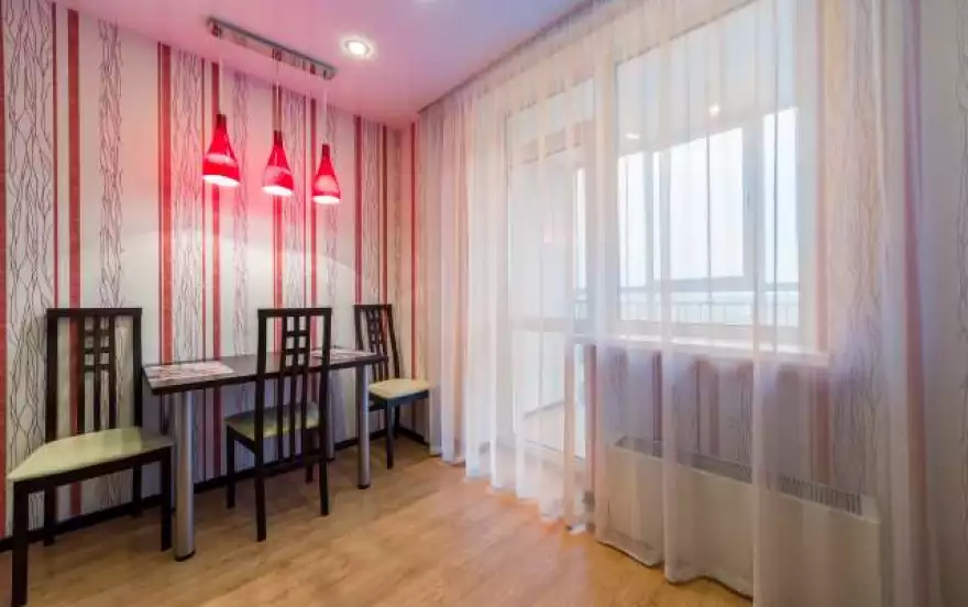 О квартире: Двуспальная кровать с ортопедическим матрацем, пристенная мебель, раскладной диван, шкаф-купе зеркальный, ЖК-телевизор. На кухне: встроенная кухня, плита, духовой шкаф, вытяжка, микроволновая печь, двухкамерный холодильник,посудомойка, электрический чайник, уютная обеденная зона с подсветкой над столом; наборы необходимой кухонной и столовой посуды, столовых приборов В ванной комнате: джакузи, стиральная машина-автомат, импортная сантехника и кафель. Предоставляются средства личной гигиены, постельное белье.