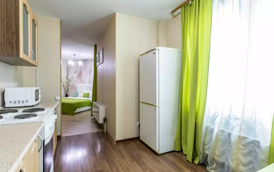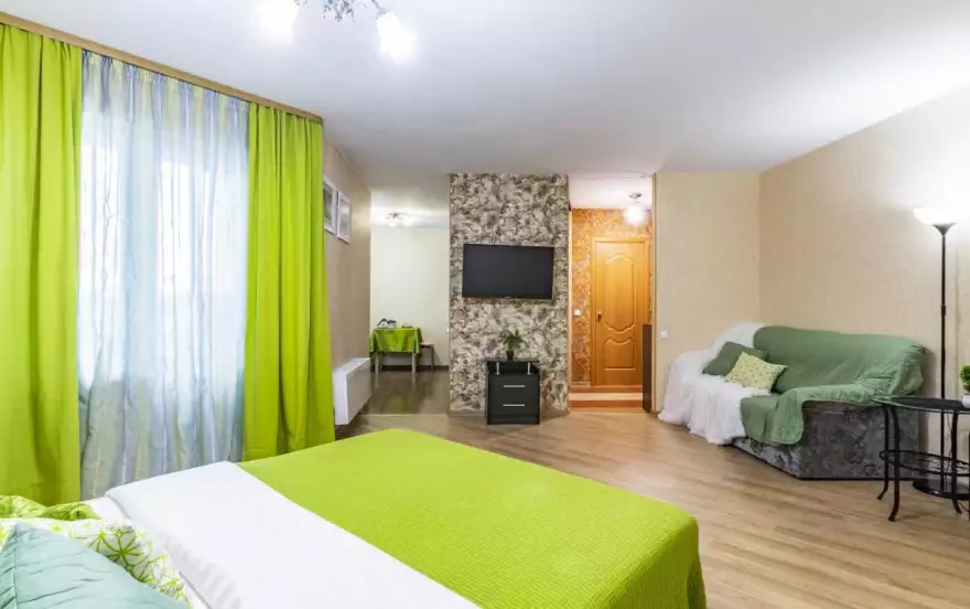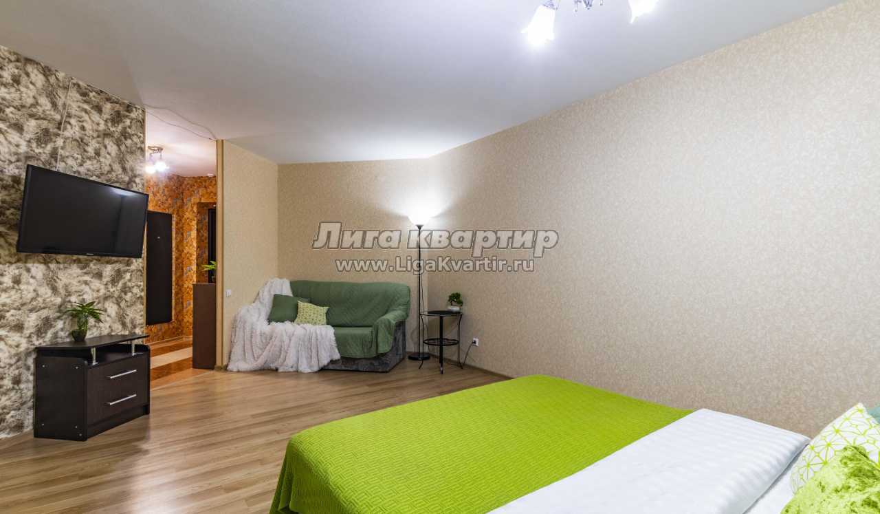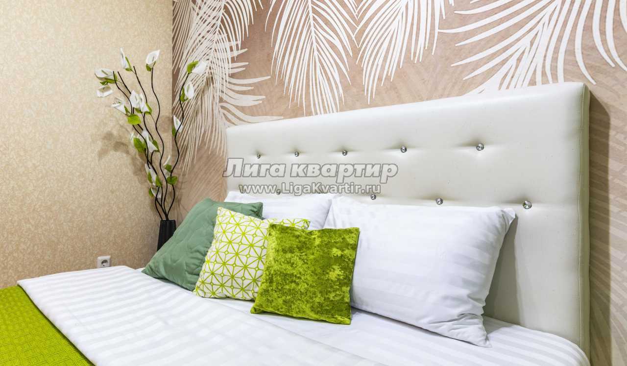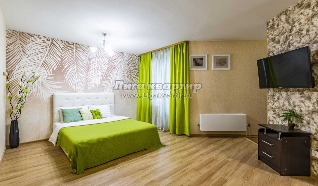 Современная квартира в новом доме, дизайнерский ремонт, мебель современная. Квартира предоставляется на часы, сутки и неделю. В комнате кровать с ортопедическим матрасом, ЖК телевизор напротив кровати, на кухне двуспальный диван, современный кухонный гарнитур, холодильник, микроволновая печь, электрическая плита, обеденная зона, посуда для приготовления и употребления еды. Ванная в кафеле, имеется стиральная машина, водонагреватель воды, средства личной гигиены (шампунь, гель для душа, жидкое мыло); также в квартире имеется сушилка для белья, фен, утюг, гладильная доска. Wi-FI интернет и многое другое.