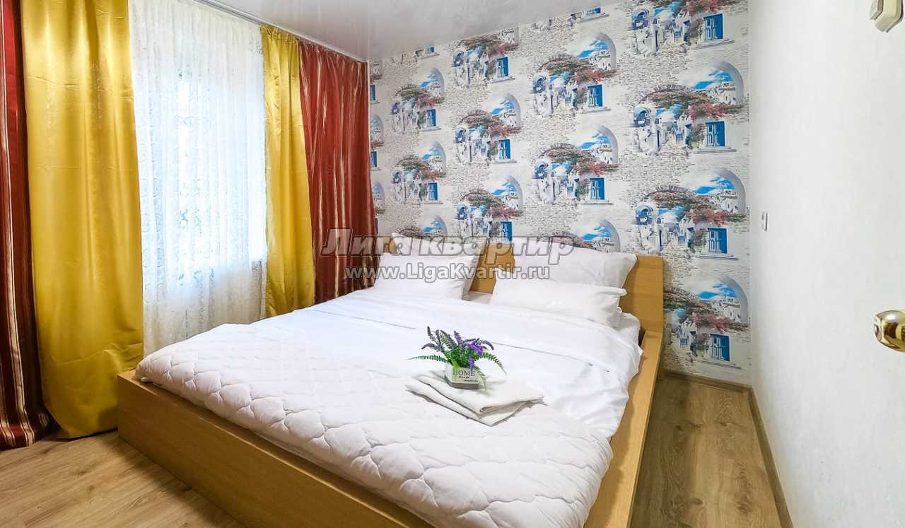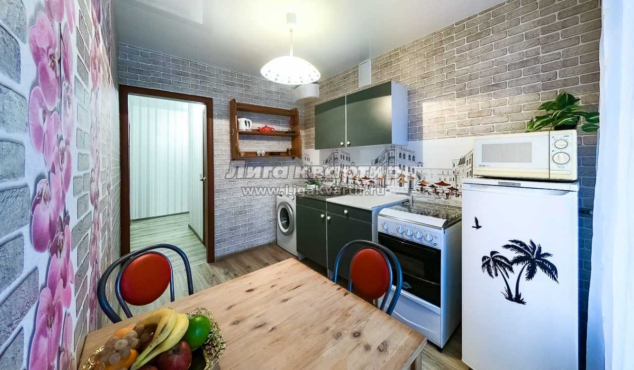 Комфортабельная квартира, оборудована всем необходимым для проживания. В квартире: Мебель: двуспальная кровать, двуспальный диван, односпальный диван шкаф для одежды и тумбочка, журнальный столик, стойка под телевизор и бытовую технику, кухонный стол, мягкие стулья, кухонный гарнитур,вся необходимая посуда, столовые приборы. Бытовая техника:телевизор, холодильник, СВЧ-печь, электрочайник, фен, утюг,ст.машина - автомат, роутер Wi-Fi.