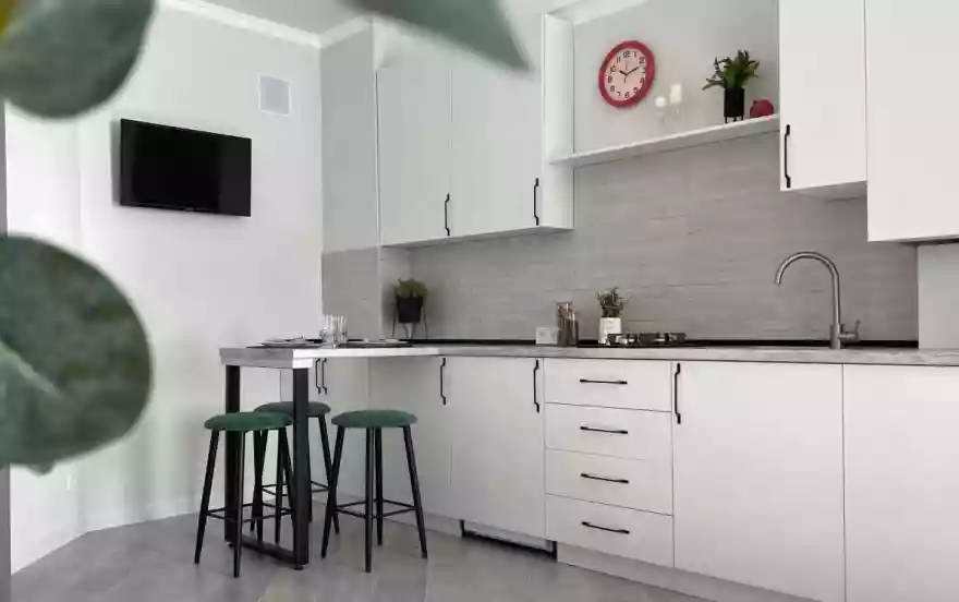 - Современная посуда, микроволновая печь, холодильник, газовая плита, чайник, кондиционер, кофеварка