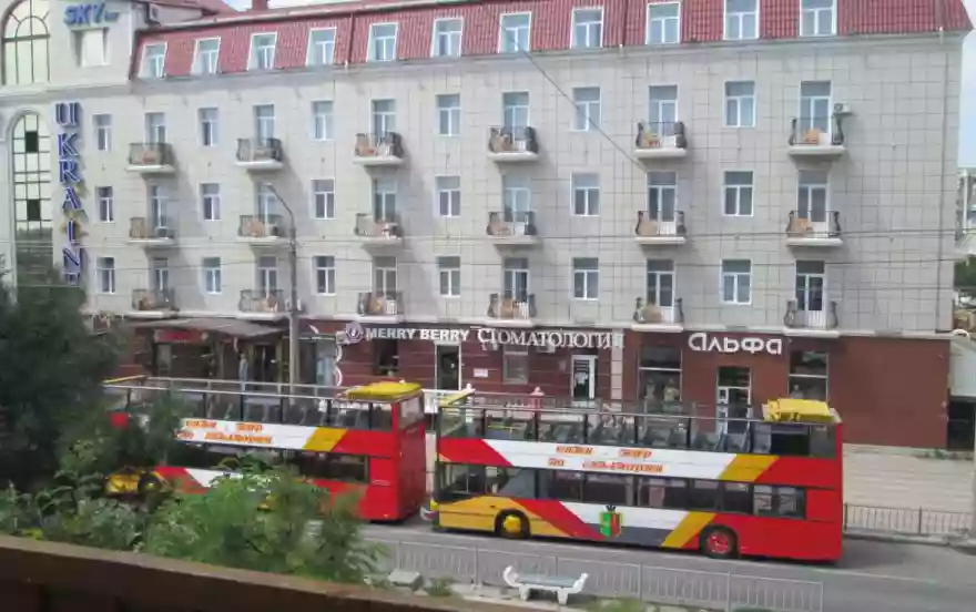 * Самый центр города (см. на карте), напротив гостиница "Украина" и парк Фрунзе.