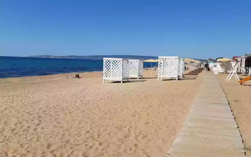 На территории пляжа расположены бар, кафе, спортивные площадки, парковка.