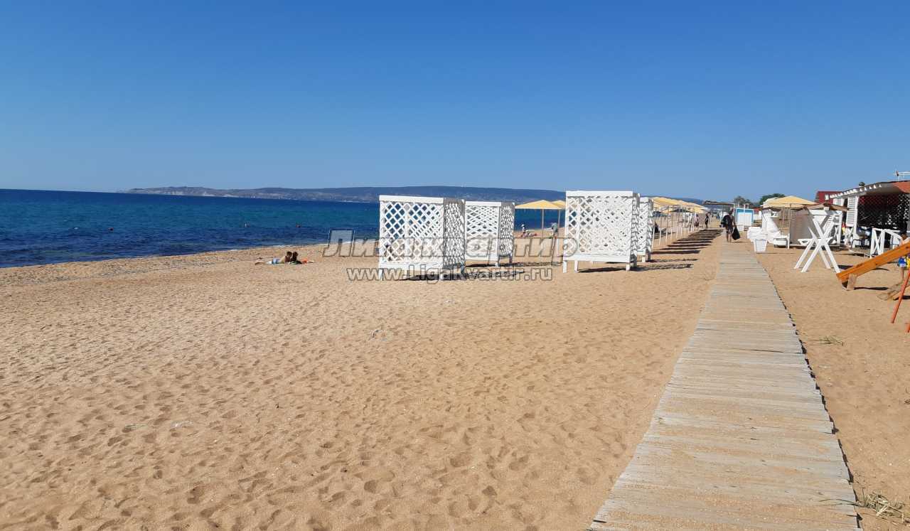 ПЛЯЖ: расстояние до ближайшего пляжа - 300м. Пляж оборудован лежаками и зонтиками, кабинками для переодевания.
