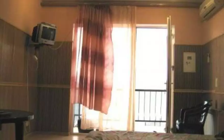В комнате телевизор, кондиционер, двуспальная кровать.