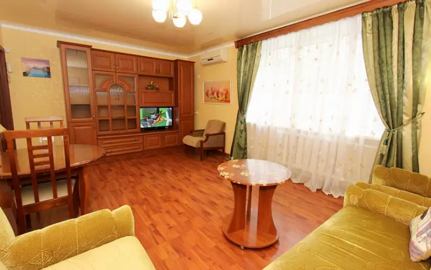 — Рассчитана для комфортного проживания до 5 человек, также предоставляется бесплатный доступ к сети интернет(Wi-Fi), постельное белье, полотенца и посуда.