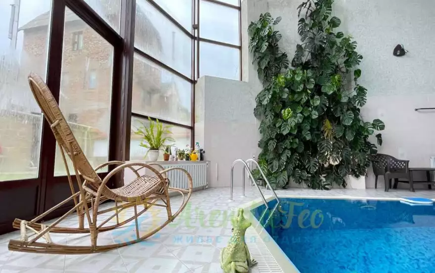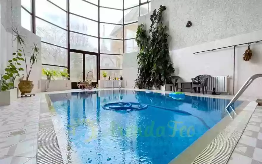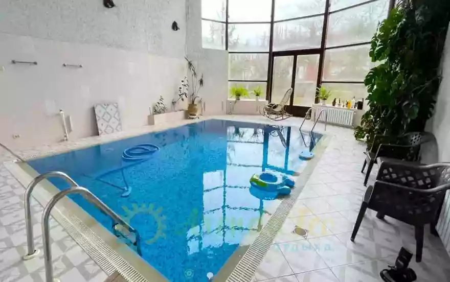 Крытый бассейн с роскошными панорамными окнами, душевыми, зоной для отдыха;