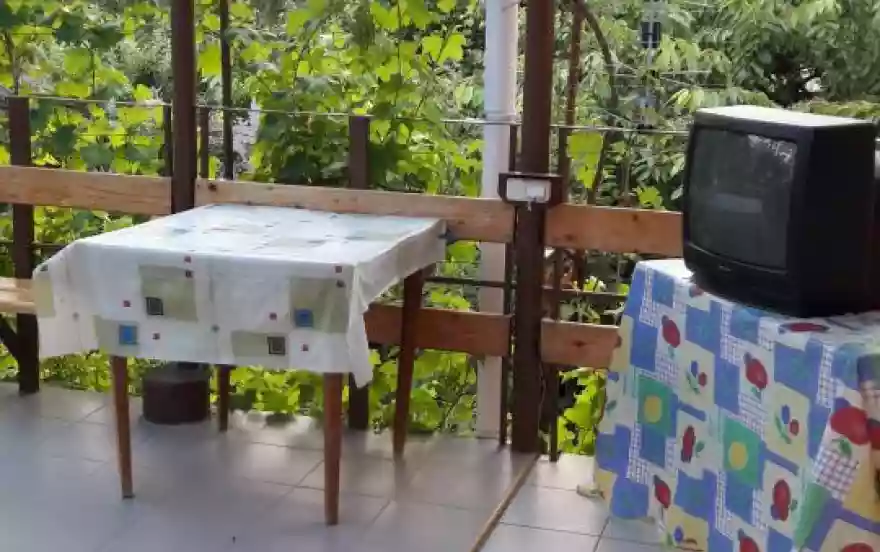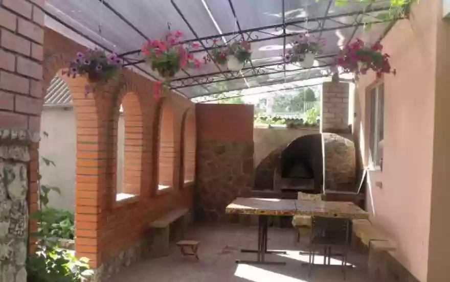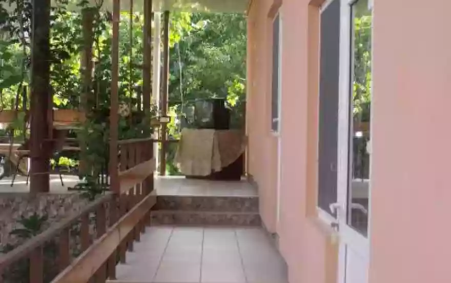 Для вас номера на 2,3+1 доп. место человека. Душ и санузел расположен в каждой комнате, спальные места, кондиционер. Из кухни просторные беседки, заплетенные виноградом, где можно посидеть и отдохнуть, наслаждаясь свежим воздухом. Кухня на первом этаже для приготовления пищи с двумя большими холодильниками и газовой плитой, посуда, микроволновая печь, гладильная доска с утюгом (есть все необходимое), стиральная машина. Отдельная зона отдыха с мангалом.
