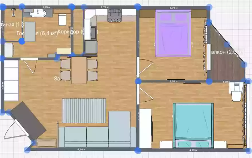 - Площадь: 57м2