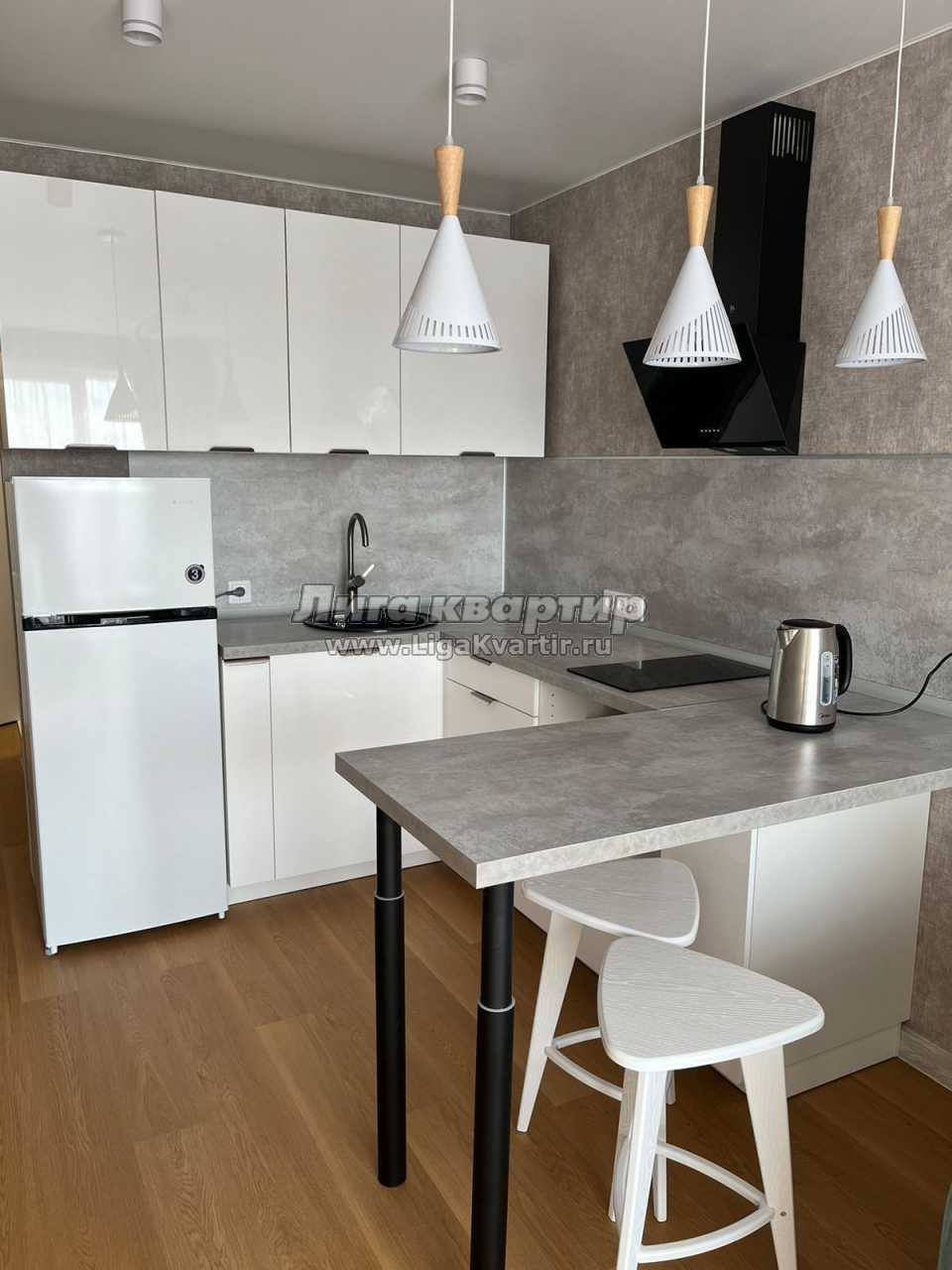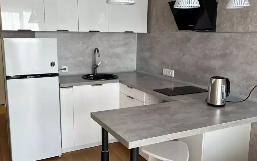 - Современная кухня с барной стойкой, где можно приготовить вкусную еду