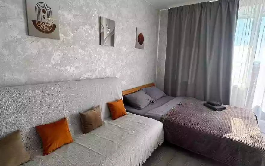 Шикарная студия для четверых гостей с балконом и красивым видом на город