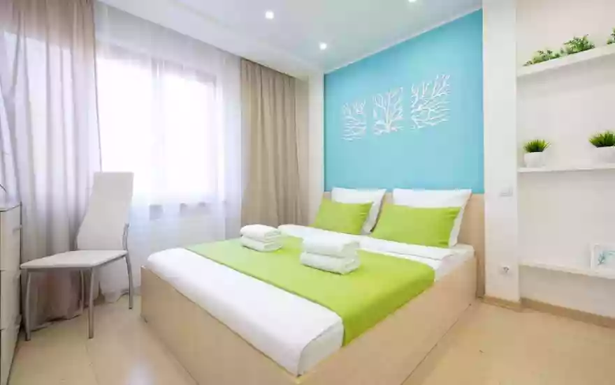 - В каждой из двух раздельных спален есть двуспальная кровать с ортопедическим матрасом. В одной из спален обустроен уголок для личного ухода: столик-комод с настенным зеркалом и стул. Уют, максимальное удобство, безупречная чистота, современный домашний интерьер в светлых тонах, наличие всего необходимого позволят гостям в полной мере насладиться безмятежным отдыхом, сном и приятным времяпрепровождением.