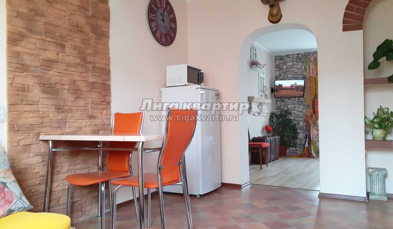 Квартира-студия наполнена винтажными предметами интерьера; комната оформлена в стиле прованс; кухня стилизована под итальянское кафе. Особо гостей порадует новая кровать с ортопедическим матрасом высотой 24 см.