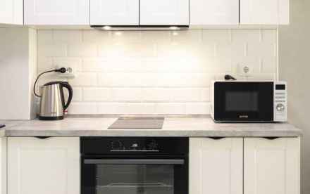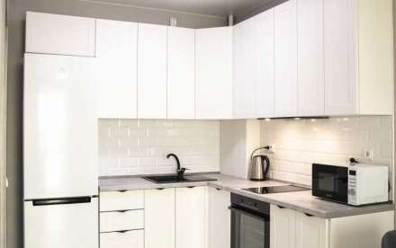 - кухня: электрическая плита, современная вытяжка, двухконтурный котел ( автономное отопление с климат контролем), холодильник, микроволновая печь, чайник, чайная и столовая посуда