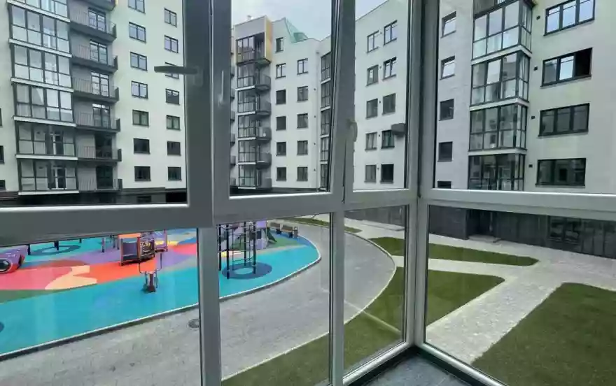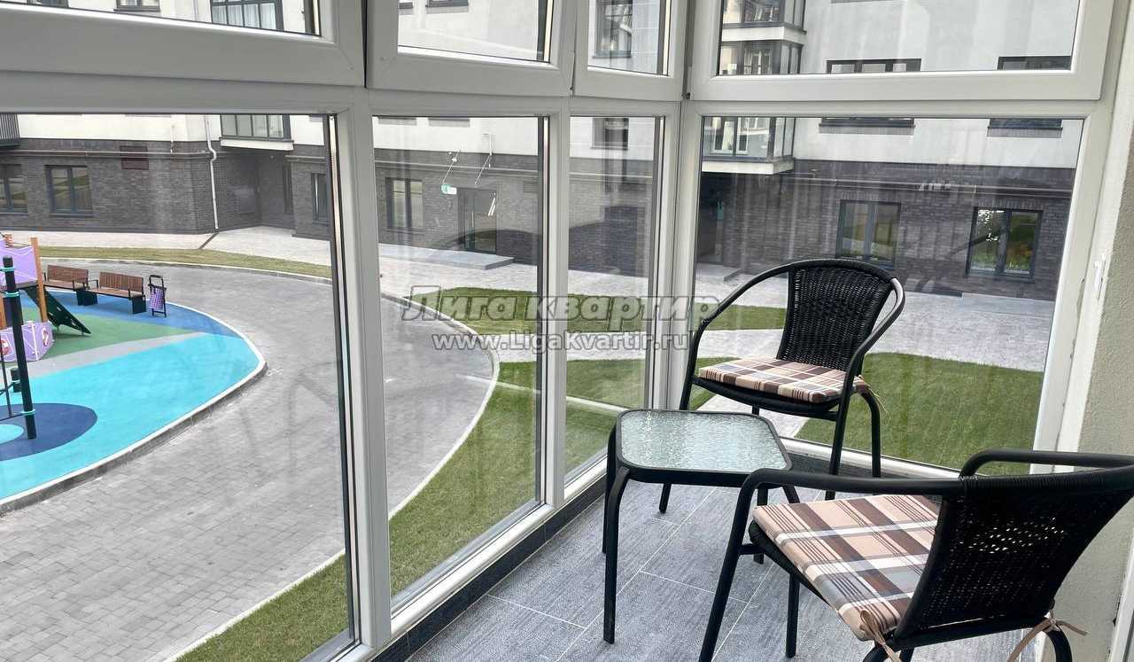 Квартира находится на 2-м этаже, есть просторная лоджия, окна выходят во двор на детскую площадку.