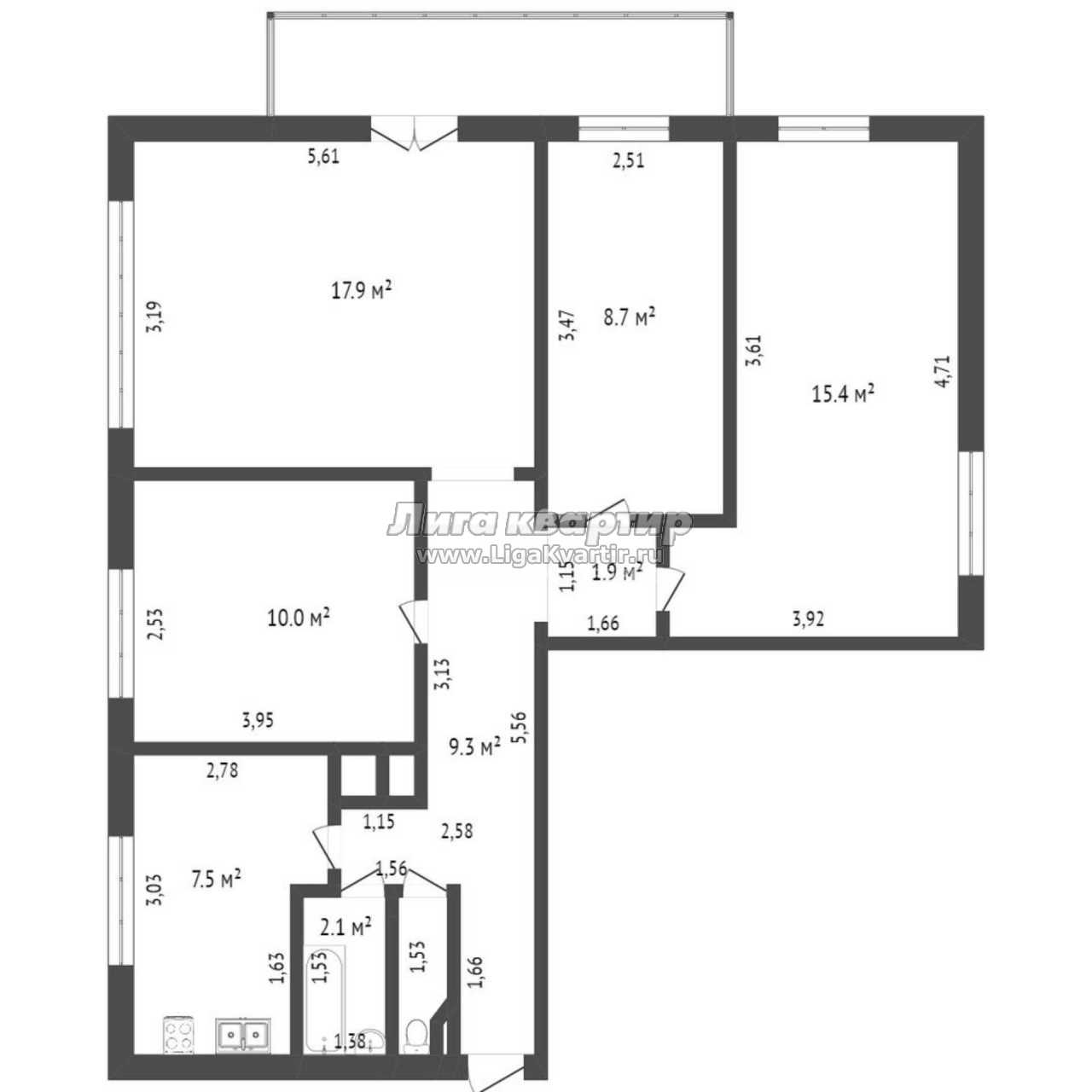 - Площадь кухни: 7.5 м²