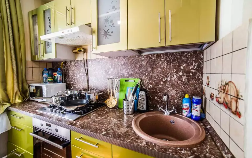 Бытовая техника: Удобная электроплита, Чистая Микроволновка, Вместительный Холодильник, Стиральная машина - автомат и сушилка для белья и одежды, Мощный Фен, Утюг и гладильная доска, Посудомойка.