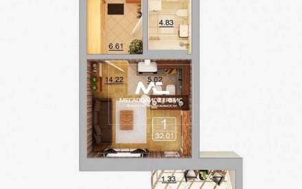 - Общая площадь: 32 м²