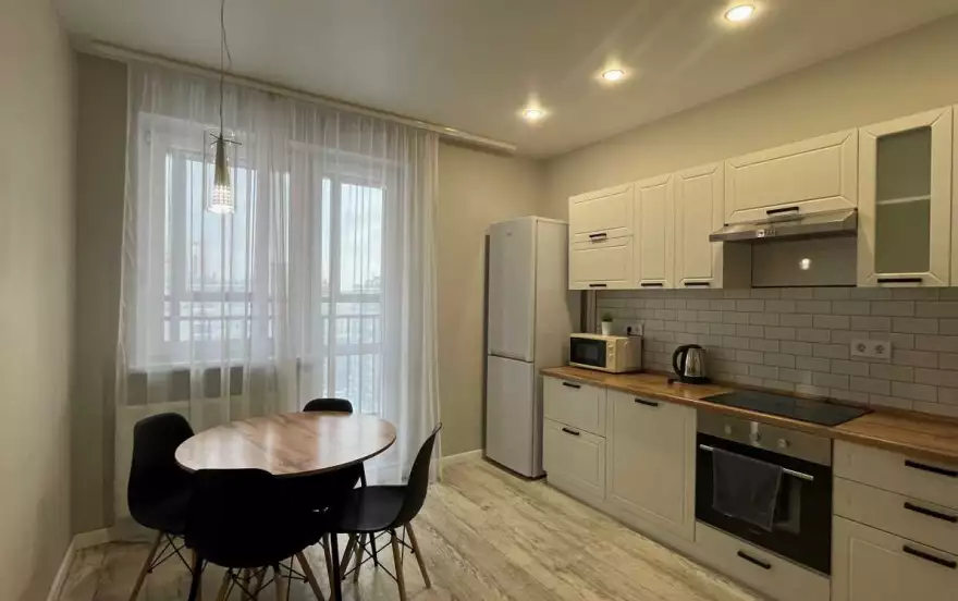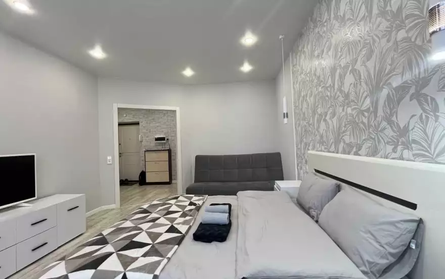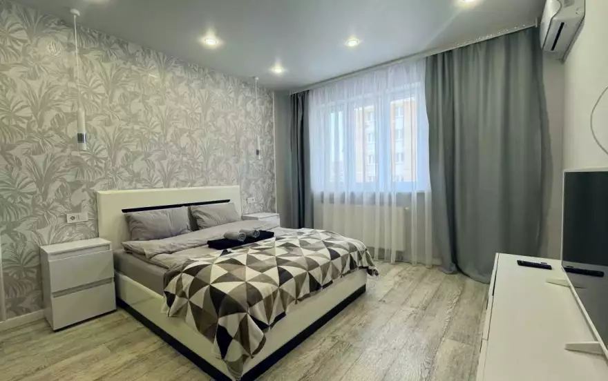 Приглашаем Вас в уютную новую квартиру посуточно у аквапарка Ривьера, стадиона Казань арена и Татнефть арена, дворца водных видов спорта и дворца единоборств. Через мост уже Кремлевская набережная и парк Урам.