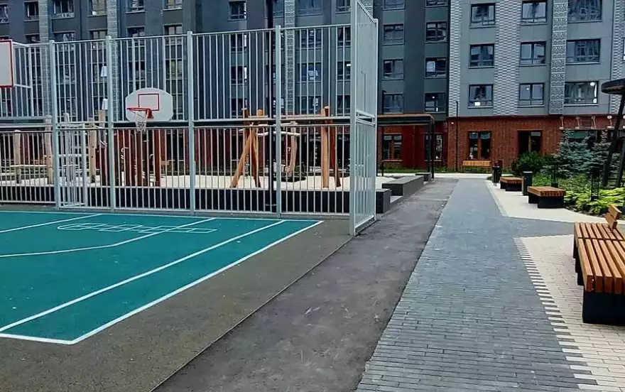 закрытый двор с детской и спортивной площадкой и прогулочной зоной