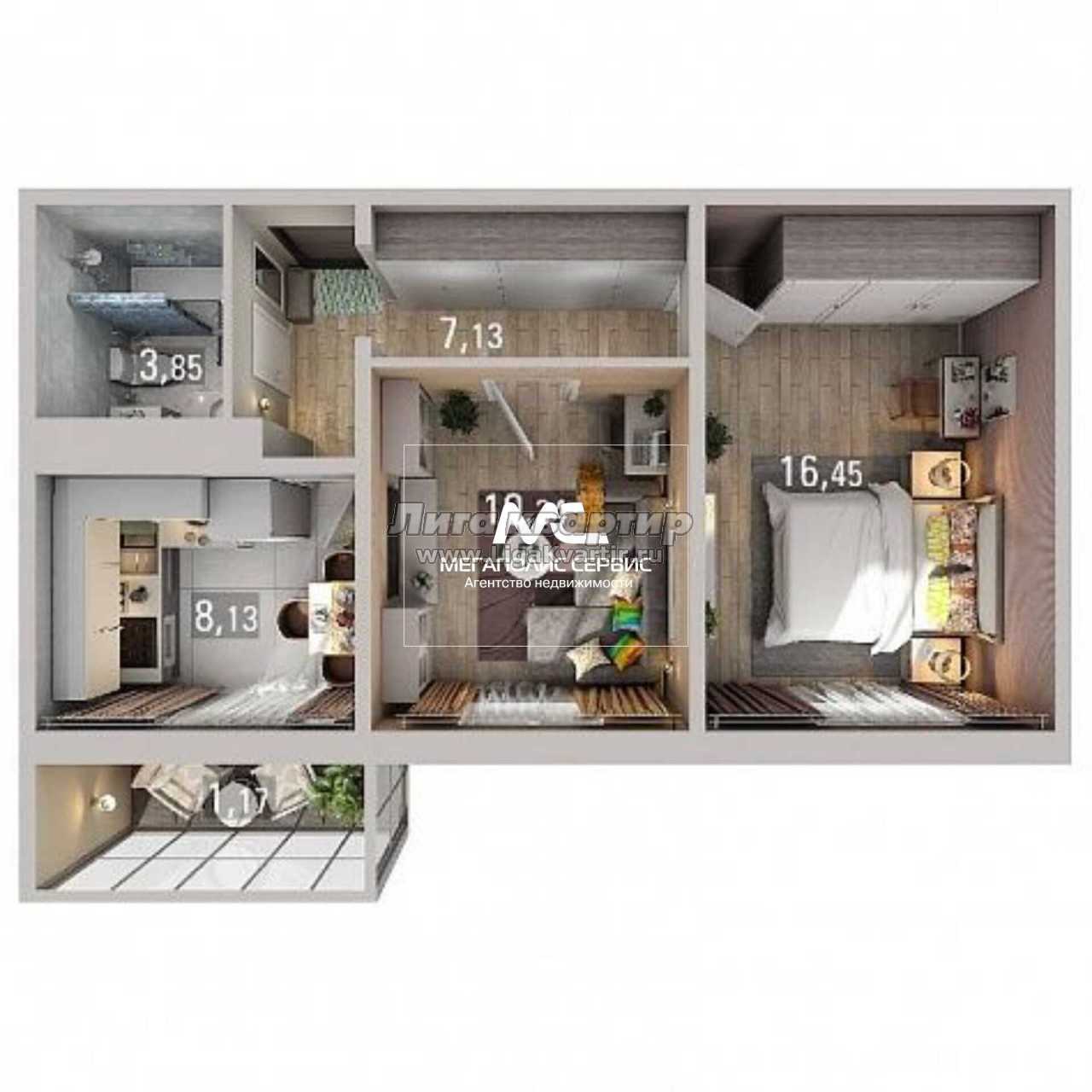 - Общая площадь: 47.1 м²