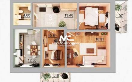 - Общая площадь: 73 м²
